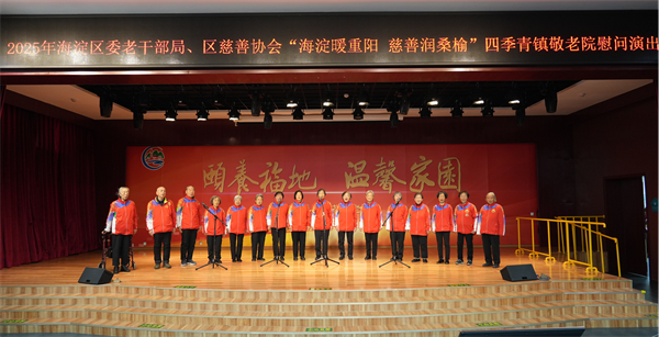 2025年10月24日,由海淀区委老干部局、区慈善协会共同主办,海淀四季青敬老院协办的“海淀暖重阳,慈善润桑榆”慰问演出活动在四季青镇敬老院举办。海淀区委老干部局局长毕淑琴,海淀区慈善协会会长赵小云、副会长李大成、王彩霞、秘书长马素霞携全体协会人员参加。四季青敬老院书记兼院长简晓慧携敬老院老人及员工共同参加。